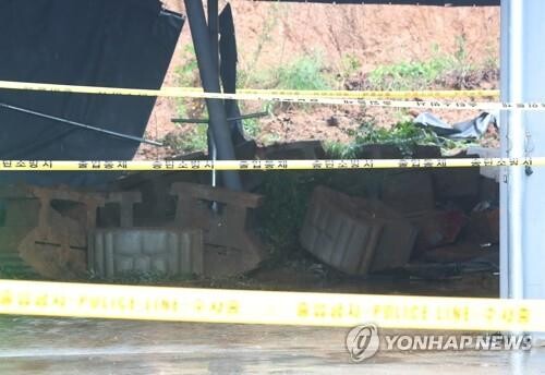 이 작업장과 야산 사이에는 벽돌로 쌓인 옹벽이 산사태로 맥없이 무너지며 작업장의 벽면 천막 쪽으로 쏟아지며 무너졌다. 당시 작업장에는 모두 6명이 있었으며 이들은 용접작업을 하던 것으로 알려졌다.