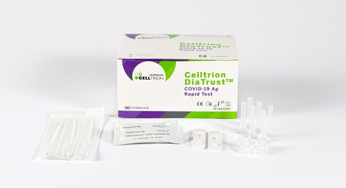 셀트리온은 체외진단 전문기업 휴마시스와 공동개발한 코로나19 현장형항원신속진단키트 '디아트러스트(Celltrion DiaTrust™ COVID-19 Ag Rapid Test)'가 미국 식품의약국(FDA)의 긴급사용승인을 획득했다고 19일 밝혔다.