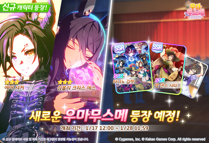 이번 업데이트에서는 서포트 카드 2종 ‘SSR [포르투나의 갈채] 타니노 김렛’과 ‘SSR [드높이 YO-HO!] 탭 댄스 시티’도 추가해 육성의 재미를 더했다.