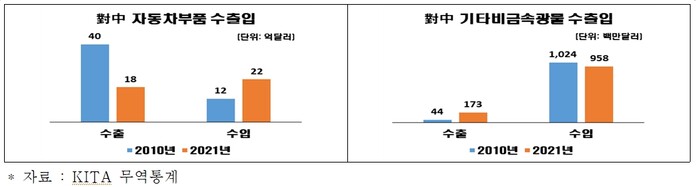| ▲ 대중 자동차부품 수출입, 대중 기타비금속광물 수출입 비교. [전경련 제공] |