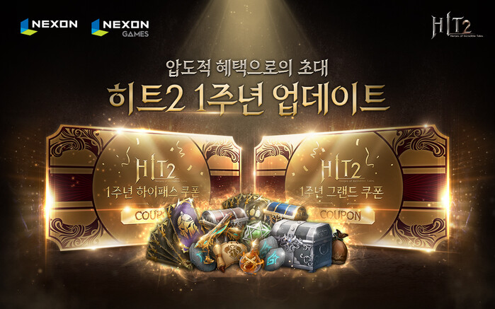 넥슨은 ‘히트2’ 1주년 업데이트 도입에 앞서 오는 22일까지 사전등록 이벤트를 개최한다. 이벤트 페이지를 통해 사전등록에 참여하면 즉시 사용 가능한 ‘1주년 하이패스 쿠폰’과 업데이트 이후 사용 가능한 ‘1주년 그랜드 쿠폰’을 각각 선물한다.
