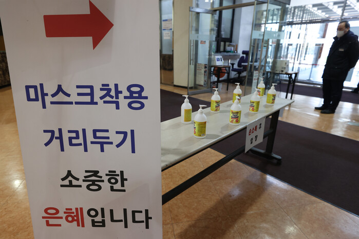 ▲ 종교시설에서도 오는 18일부터 예배 등 정규활동에 참여할 수 있는 인원이 줄어든다. 사진은 17일 서울 여의도 순복음교회 입구에 놓여진 거리두기 안내문과 손소독제. [사진=연합뉴스] |