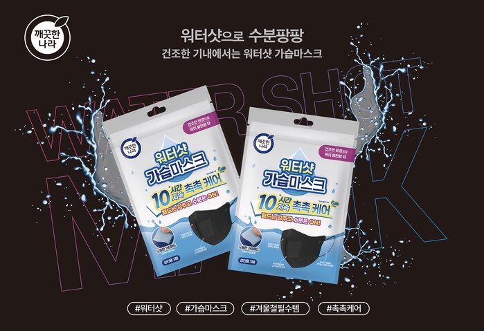 ‘깨끗한나라 워터샷 가습마스크 블랙’은 지난 8월 화이트 색상으로 출시된 ‘깨끗한나라 워터샷 가습마스크’에 블랙 색상을 추가한 확장 제품이다. 기존 화이트 제품은 출시 두 달 만에 판매량이 약 460% 증가하기도 했다.