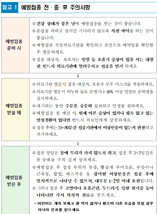 ▲ 예방접종 전·중·후 주의사항. [출처= 질병관리청] |