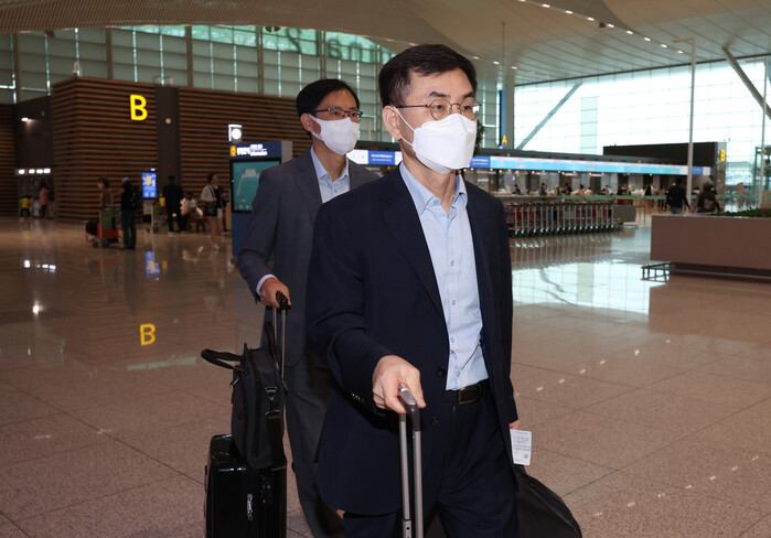 이날 정부에 따르면 안성일 산업통상자원부 신통상질서전략실장, 기획재정부 손웅기 통상현안대책반장, 외교부 이미연 양자경제외교국장 등으로 구성된 대표단이 미국으로 출국했다.