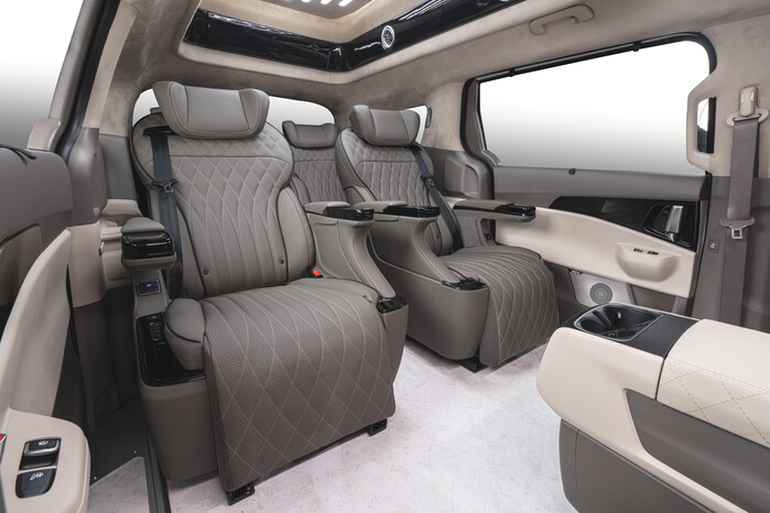 카니발 하이리무진 PACKAGE 3는 1열 리무진 시트, 2열·3열 의전 시트, 프리미엄 대리석 플로어를 기본으로 구성해 의전 및 일상 사용을 동시에 고려했다. 필수 요소를 중심으로 패키지를 구성해 별도의 선택 과정 없이도 활용이 가능하도록 했다.