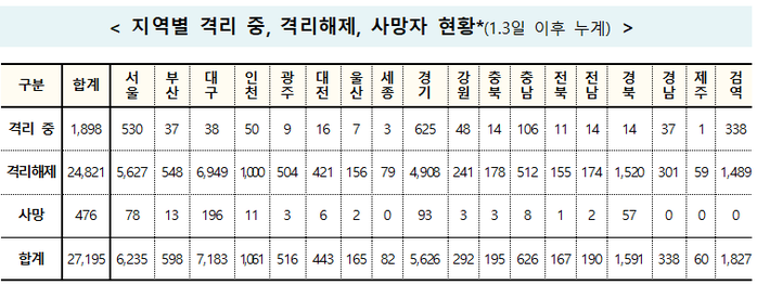 이날도 코로나19로 숨진 환자가 1명이 추가돼 누적 사망자는 476명(치명률 1.75%)으로 늘었다. 11일 연속 사망자가 나왔다.