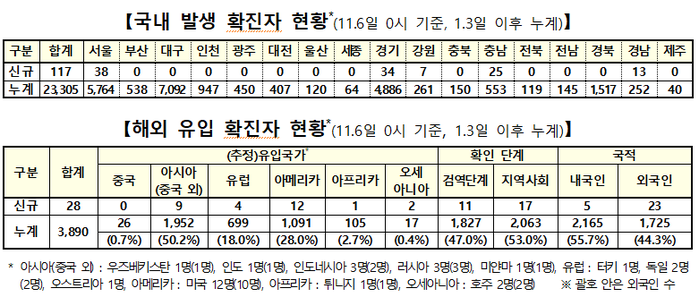 신규 확진자 145명 중 지역사회에서 감염된 것으로 추정되는 국내발생(지역발생)은 117명이고, 해외유입은 28명이다. 해외유입 누적 확진자는 3890명이다.