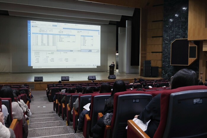 ▲더존비즈온이 13일 서울 건국대학교 새천년회관에서 OmniEsol 및 ERP iU 사용자 대상 '2025년 귀속 연말정산 집중 교육'을 진행하고 있다. [사진=더존비즈온]