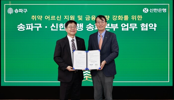 [메가경제=박성태 기자] 신한은행(은행장 정상혁)은 지난 2일 서울 송파구청에서 송파구와 ‘취약 어르신 지원 및 금융역량 강화를 위한 업무협약’을 체결했다고 3일 밝혔다.