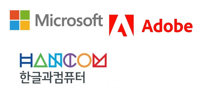 ▲ 비마이크로소프트, 어도비시스템즈, 한글과컴퓨터 각사 CI |