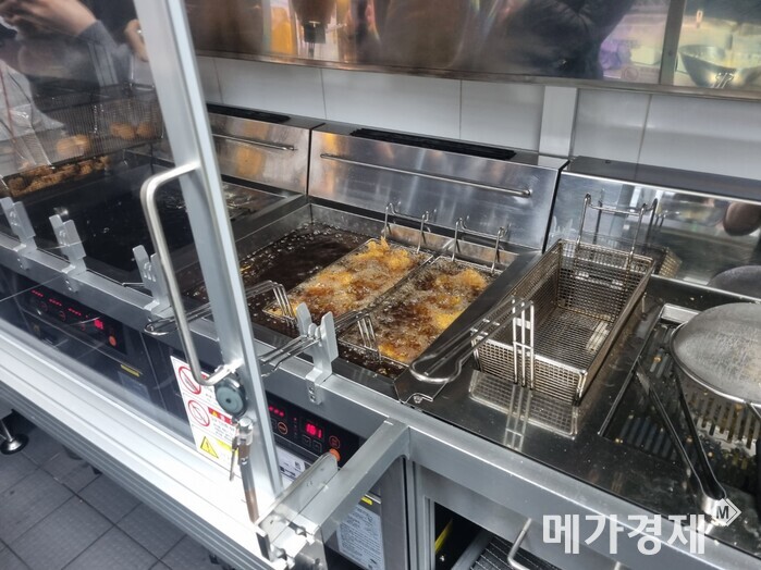 ▲ 튀봇을 통해 조리되는 콰삭킹의 모습.[사진=메가경제] |
