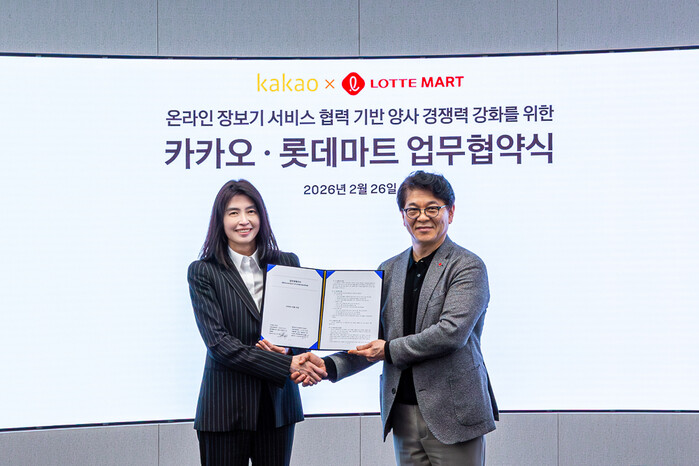 양사는 이번 MOU를 통해 신선식품과 배송 역량을 결합한 온라인 마트 쇼핑을 제공하고, 고객 기반 확대와 커머스 경쟁력 강화를 위한 협력을 이어간다. 협약식에는 정신아 카카오 대표이사와 차우철 롯데마트·슈퍼 대표를 비롯한 양사 주요 관계자가 참석했으며, 카카오와 롯데마트는 온라인 장보기 서비스 협력 방향과 역할 범위, 향후 사업 추진 방안을 논의했다.