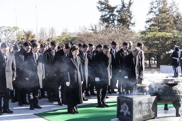 | ▲구본상 LIG 회장과 LIG넥스원 경영진을 비롯해 LIG 계열사 주요 임직원들이 서울현충원을 찾아 애국 시무식을 진행했다. [사진=LIG넥스원] |
