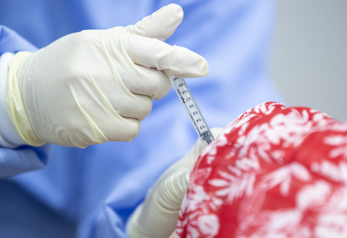 ▲ 16일 오전 서울 노원구민체육센터에 마련된 백신접종센터에서 한 의료진이 백신접종을 하고 있다.[사진=연합뉴스] |