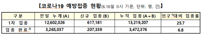 16일 코로나19 예방접종대응추진단(추진단)에 따르면 16일 0시 기준으로 전날 1차 신규 접종자는 61만7181명으로 집계됐다.