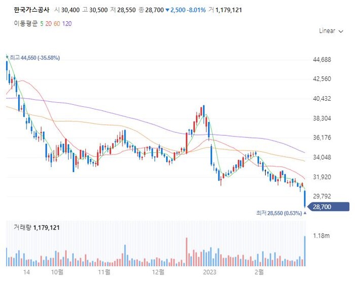| ▲ 한국가스공사 주가 추이 [출처=네이버 증권] |