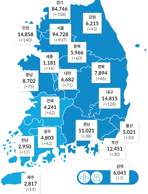 지역발생 중 서울 903명·경기 704명·인천 140명·대구 128명