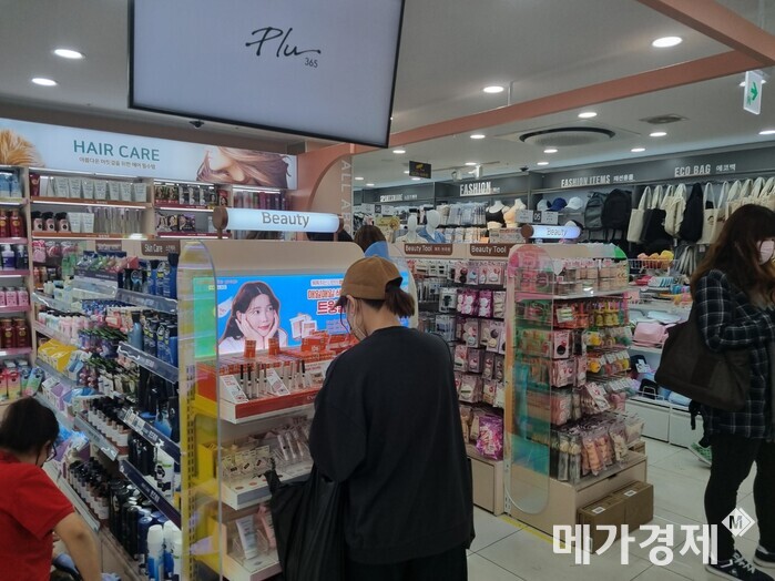 | ▲ 다이소 명동점에 위치한 뷰티 매장.[사진=정호 기자] |