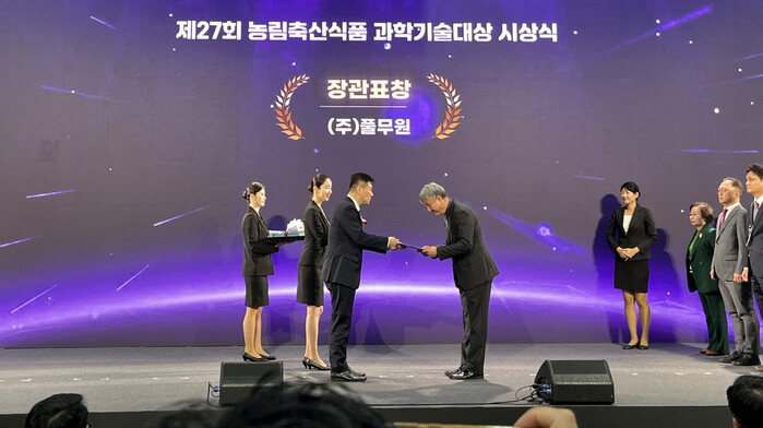 풀무원은 기후 변화 등 변동성이 큰 농업 환경에 적합한 콩나물콩 신품종 개발과 보급 확산, 제품화 노력을 인정받아 농식품부 장관 표창을 수상했다. 농림식품기술기획평가원은 풀무원의 수상에 대해 “안정적인 생산이 가능한 콩나물콩 신품종 보급과 품질 향상으로 농가 손익 증진과 국산콩 생산 기반 확대에 기여할 수 있을 것으로 기대한다”고 밝혔다.