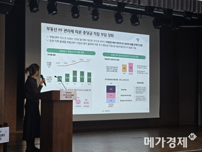 | ▲정윤영 하나금융연구소 수석연구원이 '2025년 캐피탈업 주요 전망 및 이슈' 발표를 진행하고 있다. [사진= 메가경제] |