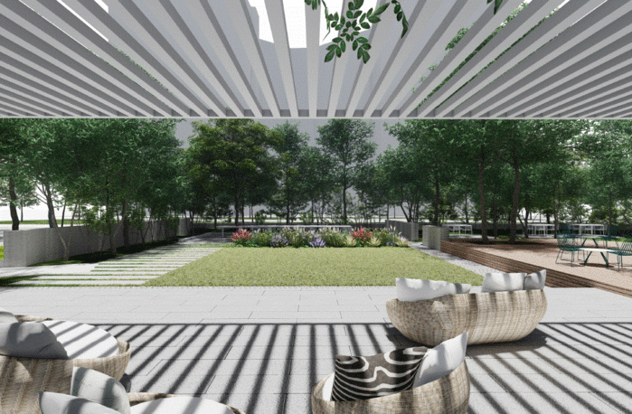 쉐이드 라운지는 '일상에서의 감각적 터치'라는 주제다. 그동안 조경 디자인에서 주목받지 못하던 공간인 주동 후면부 또는 동 사이의 음지 등에 공간별 생육환경에 적합한 식물들을 배치했다.
