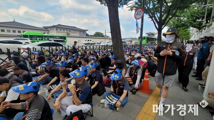 | ▲전국사무금융서비스노동조합 손해보험업종본부는 20일 오후 2시 광화문 금융위원회 정문 앞에서 ‘MG손해보험 생존권 사수·졸속매각 저지·고용보장 촉구를 위한 결의대회’를 진행했다. [사진=메가경제] |
