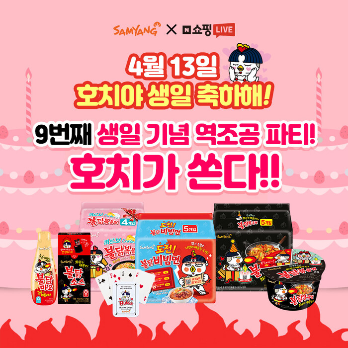 이번 방송에서는 ‘호치 대장이 쏘는 역조공 라방 파티’를 콘셉트로, 다양한 불닭브랜드 제품과 대표 캐릭터인 호치 굿즈를 판매한다.