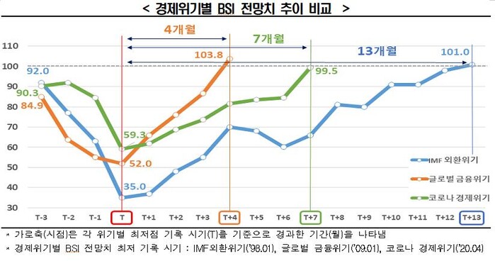 이는 글로벌 금융위기(최저점 기록 후 4개월)때보다는 느리지만 IMF 외환위기(최저점 기록 후 13개월)때보다는 빠른 수준이다.