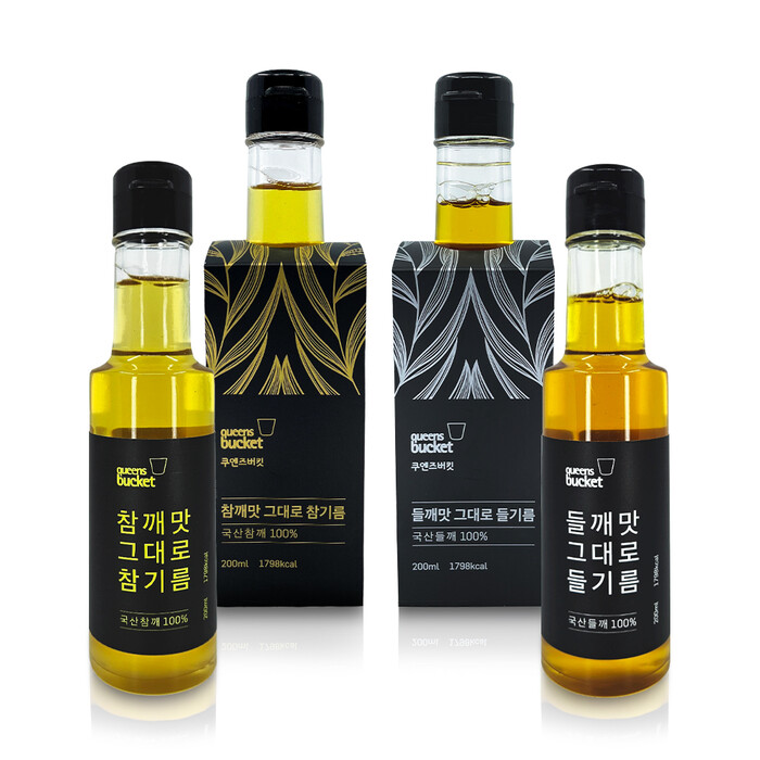 ▲ 쿠엔즈버킷의 '참깨맛 그대로 참기름', '들깨맛 그대로 들기름' [사진=쿠엔즈버킷] |
