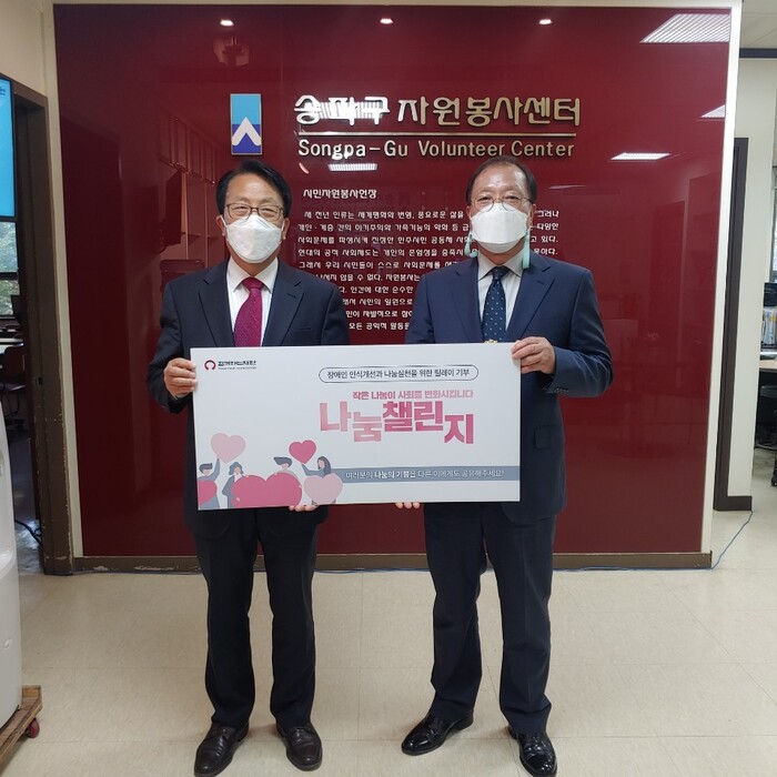 송파구자윈봉사센터 남궁천 회장이 비영리 사회복지법인 함께하는재단 굿윌스토어에서 추진하는 ‘사랑의 나눔챌린지’에 참여해 매주 수요일 두부를 정기적으로 기증하기로 했다.
