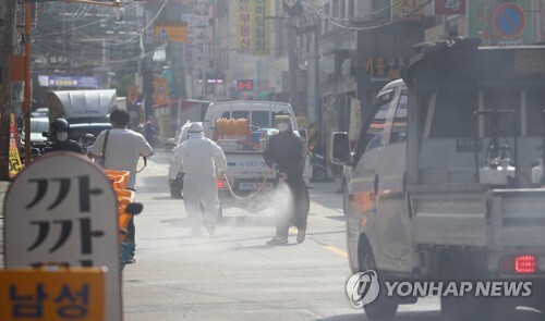 ▲ 8일 오후 서울 성북구 장위2동 사랑제일교회 인근 도로에서 장위동 상인, 주민, 공무원 등이 합동 방역 활동을 벌이고 있다. [서울= 연합뉴스] |