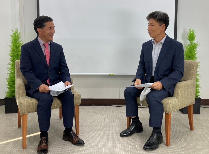 ▲ 제10회 미래일터안전보건포럼에서 김병진 법무법인 사람 안전문제연구소장(왼쪽)과 임영섭 미래일터연구원 원장이 대담을 나누고 있다. [사진= 재단법인 피플] |
