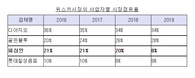 공정위 조사에 따르면, 사실상 하나의 사업체로 통합 운영된 두 회사는 국내 양주시장에서 지난 2018년까지 20% 정도의 시장 점유율을 차지했다.