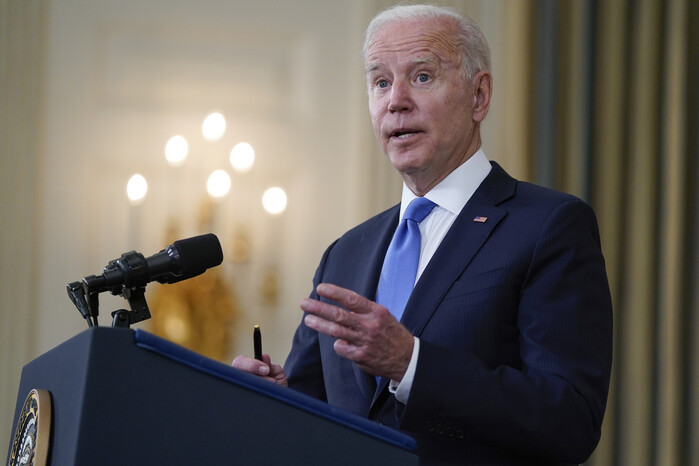 | ▲ 조 바이든 미국 대통령이 5일(현지시간) 백악관에서 경제 부양을 위한 '미국 구조계획' 이행 상황에 대한 연설 후 취재진과 문답을 나누던 중 자신과 미국이 세계무역기구(WTO)의 코로나19 백신 지재권 면제를 지지할 것인지에 대한 질문에 "그렇다(yes)"고 말했다. [워싱턴 AP=연합뉴스] |