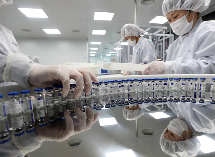 | ▲ 4일 오후 강원 춘천시 한국코러스 공장에서 직원들이 러시아산 코로나19 백신 '스푸트니크 V'를 생산하고 있다. [춘천= 연합뉴스] |