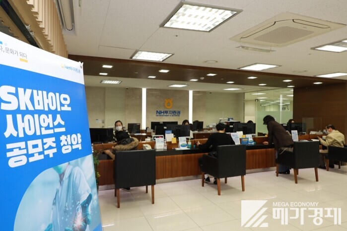 ▲ SK바이오사이언스 일반공모가 진행중인 NH투자증권 영업점 [사진=NH투자증권 제공] |