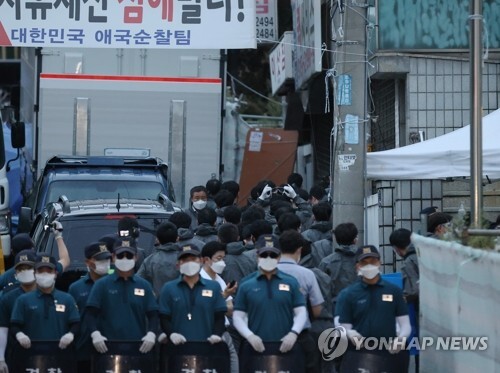 ▲ 방호복을 입은 경찰관계자들이 21일 압수수색영장을 집행하기 위해 서울 성북구 사랑제일교회 입구로 이동하고 있다. [사진= 연합뉴스] |