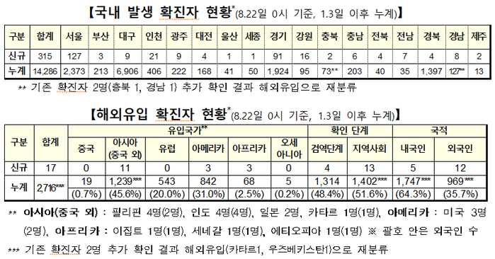 신규 확진자 중 국내발생은 이틀연속 315명을 기록했고, 해외유입은 전날보다 8명이 늘어난 17명이었다.