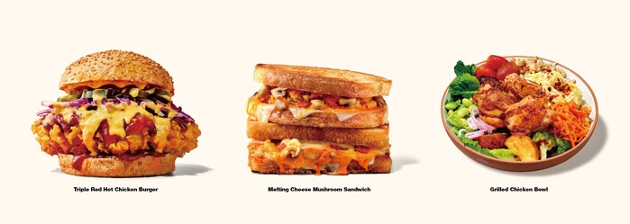 메뉴는 ▲버거&샌드위치 5종(소싯 치킨 버거, 허니 딥 치킨 버거, 트리플 레드 핫 치킨 버거, 프라이드 치킨 샌드위치, 멜팅 치즈 머쉬룸 샌드위치) ▲보울 4종(수비드 치킨보울, 크리스피 치킨보울, 떡갈비 치킨보울, 그릴드 치킨보울) ▲프라이드 2종(통안심, 살살텐더)으로 구성됐다.