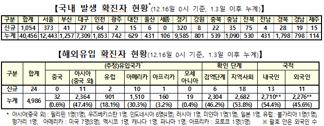 중앙방역대책본부(방대본)는 16일 0시 기준으로 전날 대비 코로나19 신규 확진자가 1078명이 추가돼 지금까지 누적 확진자 수는 총 4만5442명(해외유입 4986명)으로 집계됐다고 밝혔다.