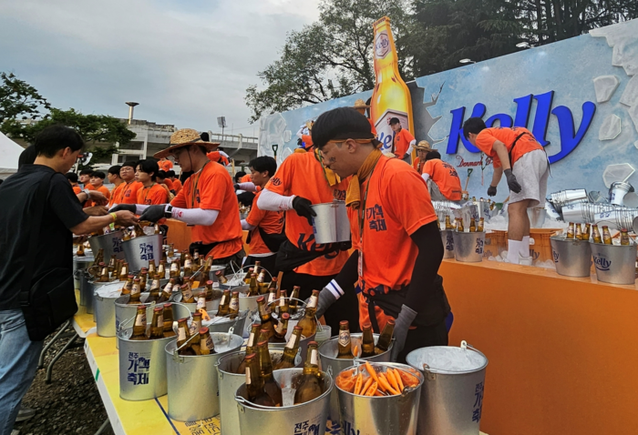 하이트진로는 폭염 속에서도 축제를 찾은 방문객들을 위해 얼음으로 가득 채운 켈리 오로라 연못(맥주 판매 부스)을 운영하며 당일 생산한 신선하고 시원한 켈리를 제공했다.