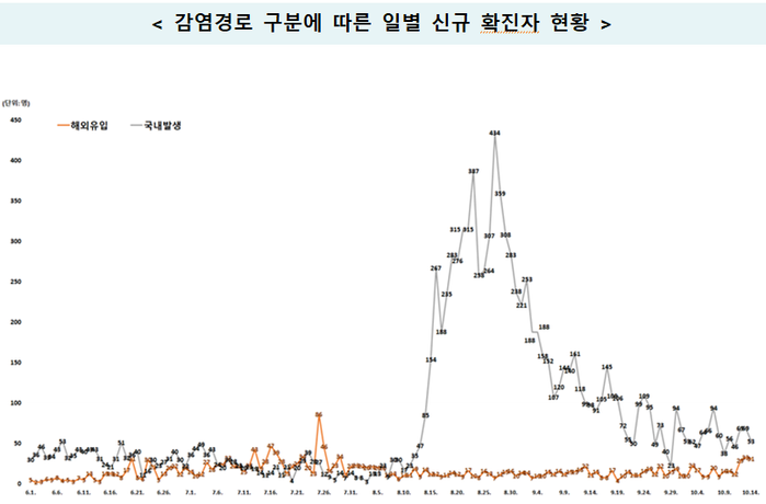 ▲ 감염경로 구분에 따른 일별 신규 확진자 현황. [출처= 중앙방역대책본부] |
