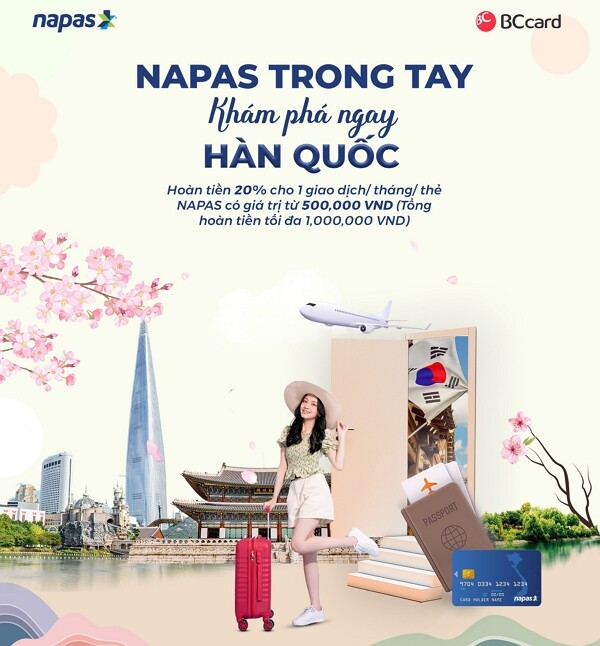 | ▲BC카드와 베트남 국영 결제중계망 사업자 ‘NAPAS’가 공동으로 한국 관광 프로모션을 진행 중이다. 사진은 NAPAS가 9월 20일까지 방한 베트남 관광객 대상으로 진행하는 20% 캐시백 이벤트 내용으로 공식홈페이지 등에 게재되어 있다.[사진=NAPAS] |