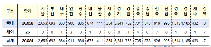 신규 확진자 중 지역발생(국내감염)은 2만58명, 해외유입은 26명이다.