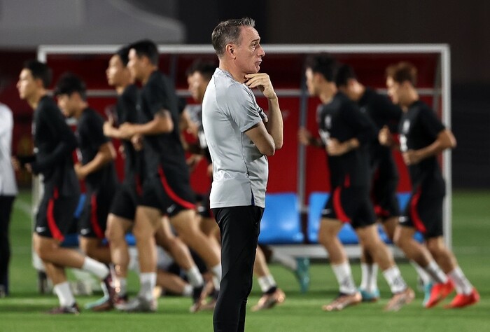 | ▲ 2022 카타르 월드컵 대한민국 축구 대표팀을 이끄는 파울루 벤투 감독이 19일 오후(현지시간) 카타르 도하의 알에글라 훈련장에서 선수들을 지켜보고 있다. [도하=연합뉴스] |
