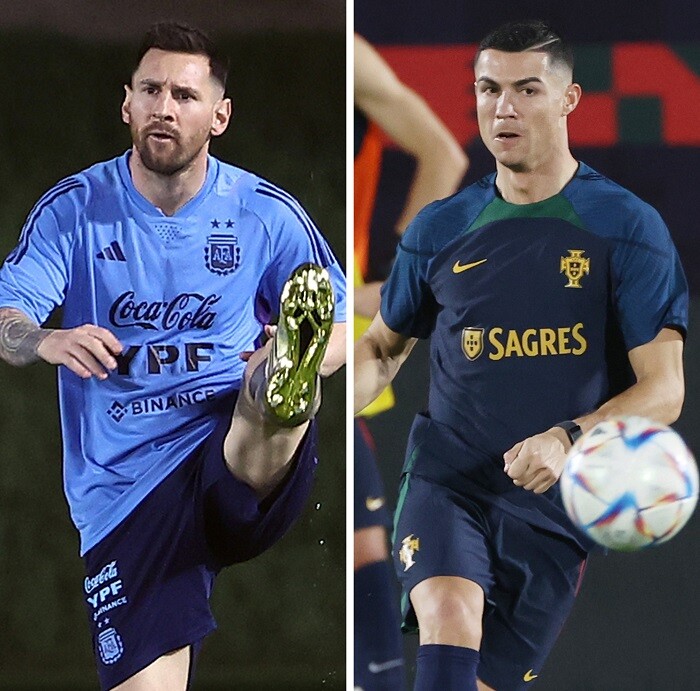 | ▲ 2022 카타르 월드컵 아르헨티나 축구 대표팀의 리오넬 메시(왼쪽 사진)와 포르투갈 대표팀의 크리스티아누 호날두가 19일 오후(현지시간) 카타르 도하의 훈련장에서 각각 훈련하고 있다. [도하=연합뉴스] |