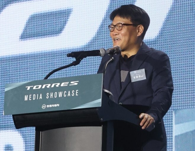 ▲ 지난 7월 쌍용차 SUV 토레스 언론공개 행사에 참석한 정용원 신임 대표. [사진=연합뉴스] |