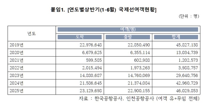 | ▲연도별상반기(1-6월) 국제선여객현황] |