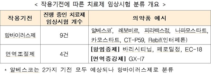 ▲ 치료제 임상시험 분류개요.[출처= 식품의약품안전처] |
